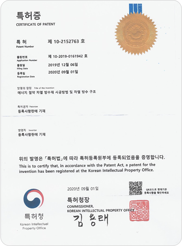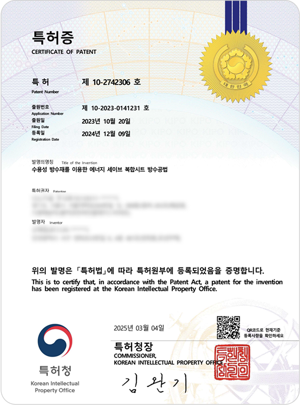 에너지 세이브 복합시트 방수공법 (특허번호: 제10-2742306호)