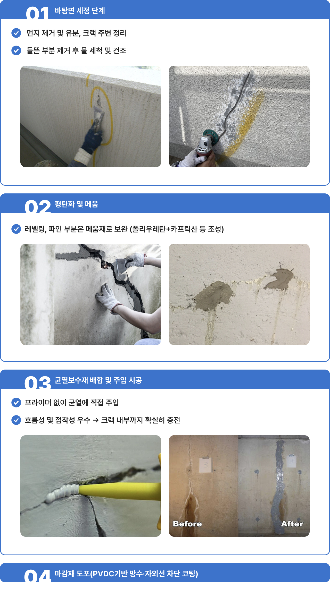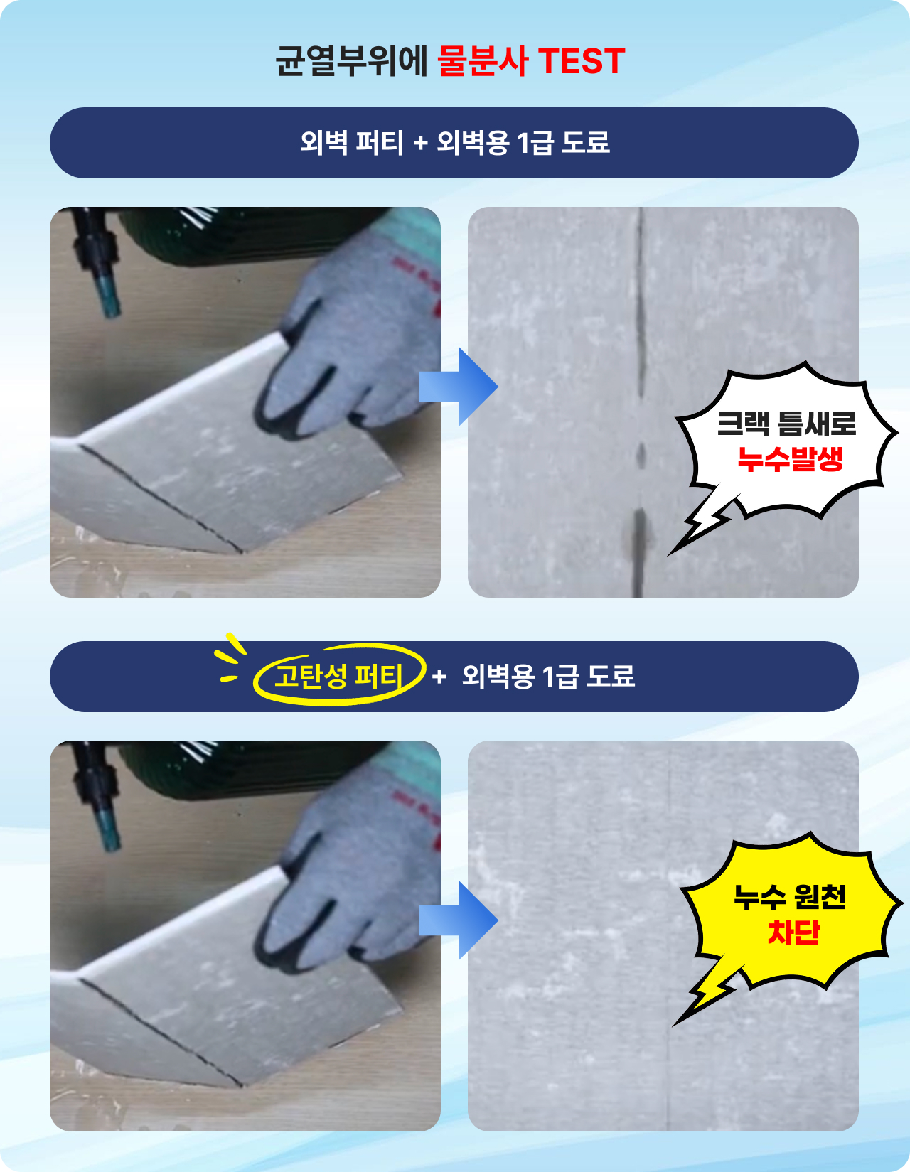 특징 및 장점 - 균열 부위 방수 성능