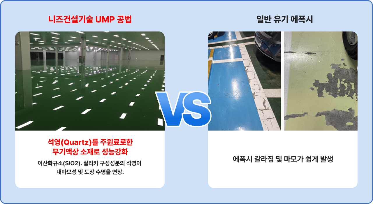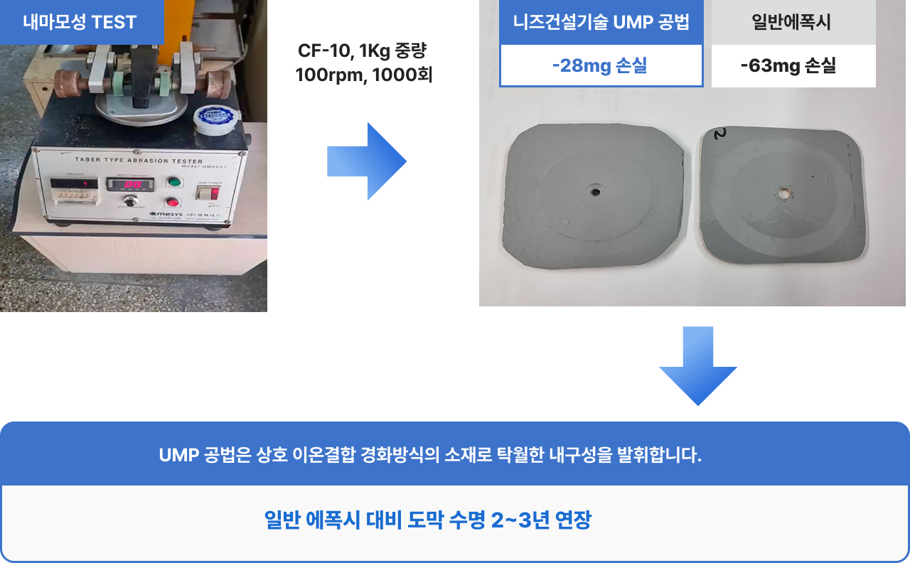 니즈건설기술 UMP 공법 물성 비교(vs 일반 에폭시)