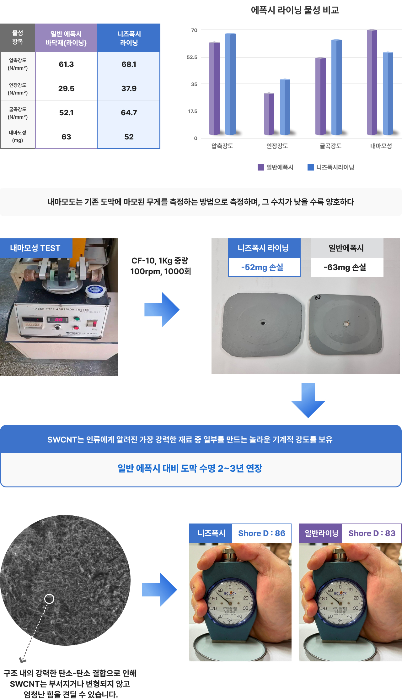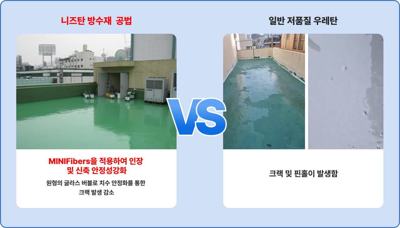 니즈폭시 공법 물성 비교 vs 일반 KS 우레탄