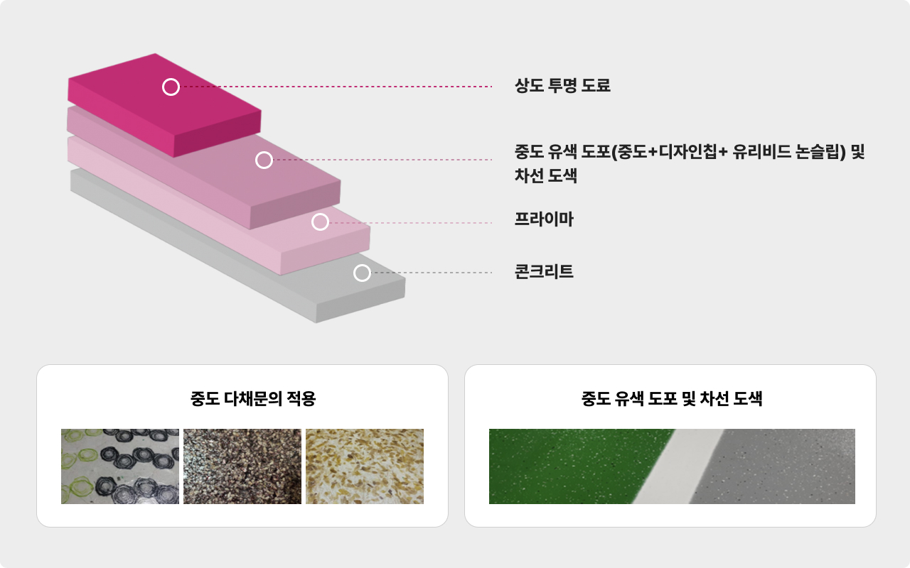 우수한 품질의 우레탄 도료를 사용하여 내구성 및 방수성이 우수한 도막을 형성합니다.