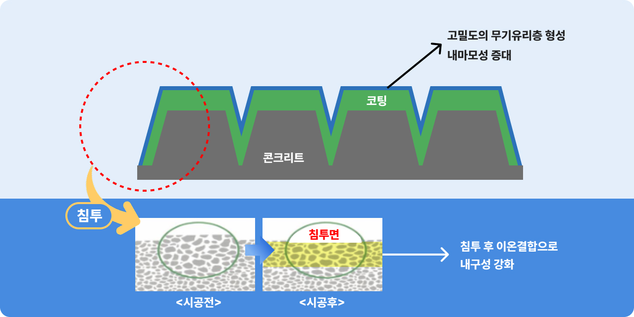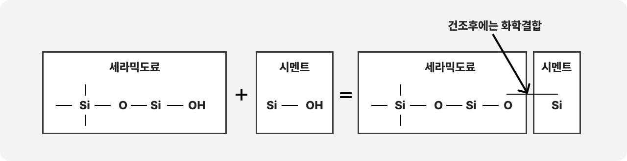 - 공기 중의 수분 및 콘크리트와 반응해 탈수/축합 반응 진행