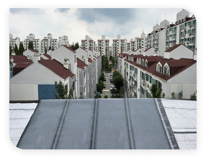 태양열에 의한 건축물 온도 상승을 방지하여 차열 특성을 강화시키는 복합시트 공법입니다. 방수기능이 들어가 있는 3layer 시트와 차열 강화 방수재를 이용하는 공법으로 건축물의 크랙,박리 현상을 막아주고 더 나아가 건축물의 수명을 연장시켜줍니다.