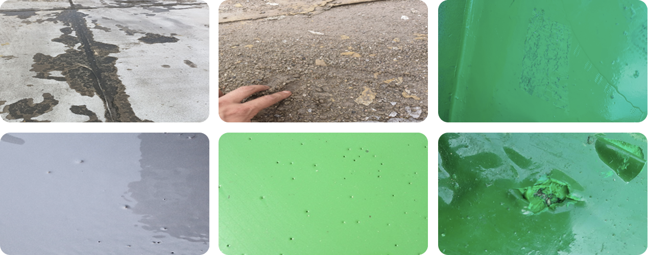 소지처리 불량 및 저품질 에폭시 시공 불량 예시